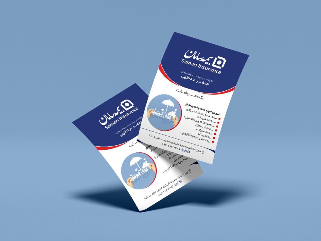 برای بیمه سامان، یک تراکت تبلیغاتی اختصاصی طراحی شد که با استفاده از رنگ سازمانی آبی و هویت بصری برند، پیام اعتماد و اطمینان را به مخاطب منتقل میکند.