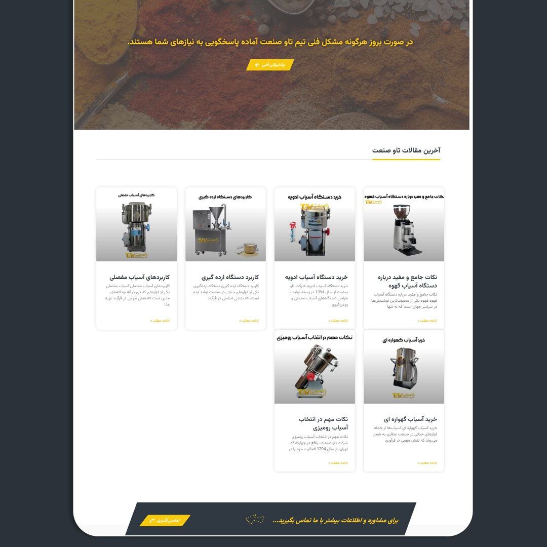 برای شرکت تولیدی تاو صنعت، تولیدکننده انواع آسیاب صنعتی، روغنگیر، کرهگیر و تجهیزات فرآوری مواد غذایی، خدمات کامل پشتیبانی سایت و سئوی تخصصی توسط تیم ما انجام شد.