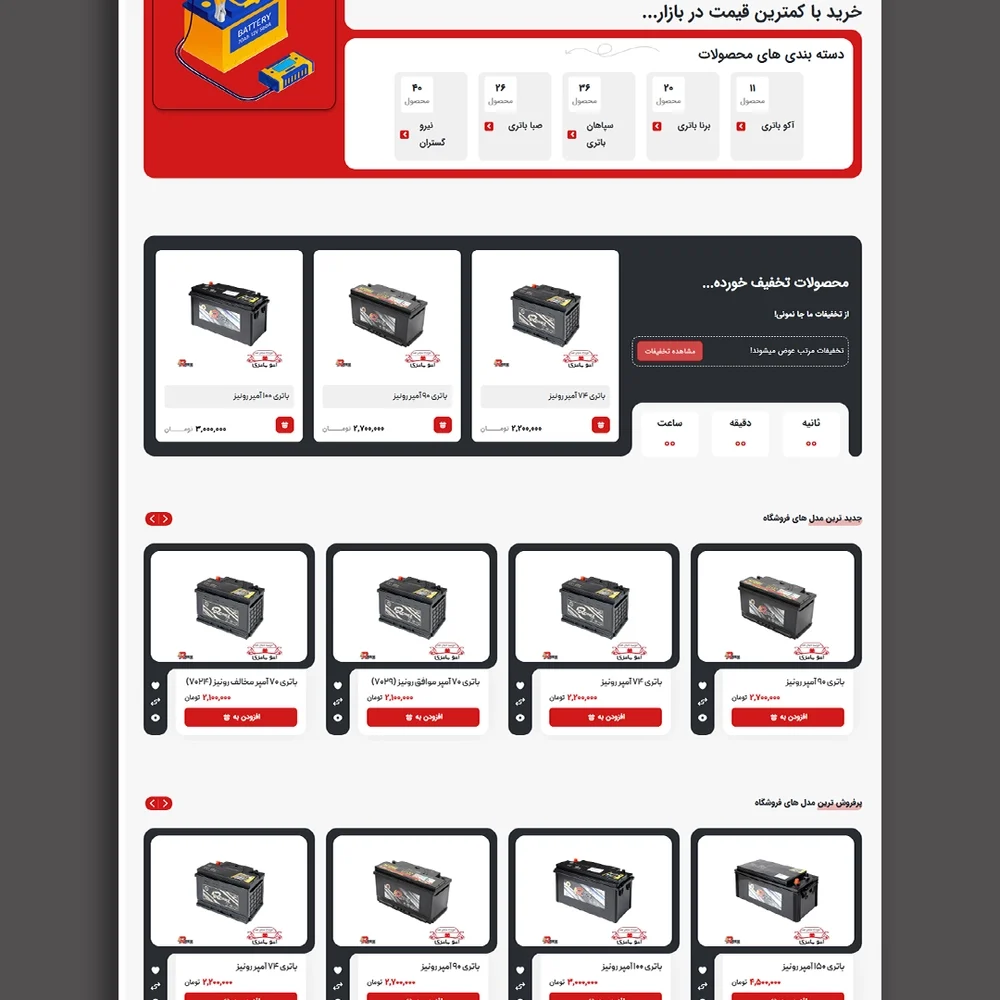 🔋 طراحی حرفه‌ای و کاربرپسند برای فروش آنلاین باتری خودرو